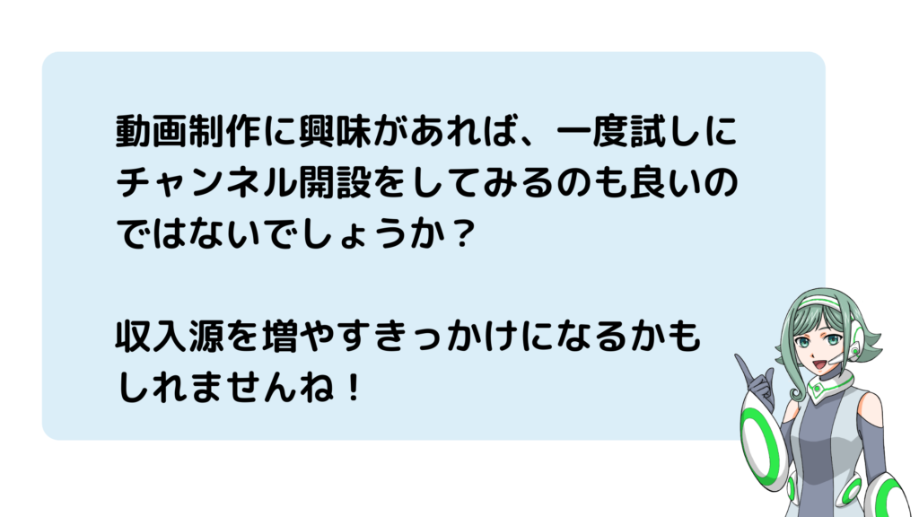 また、YouTubeを足掛かりに知名度を上げ、他のビジネスを起業したり、自分のお店の宣伝をしたり、YouTubeを活用して別の部分で収益化を図ることも可能です。