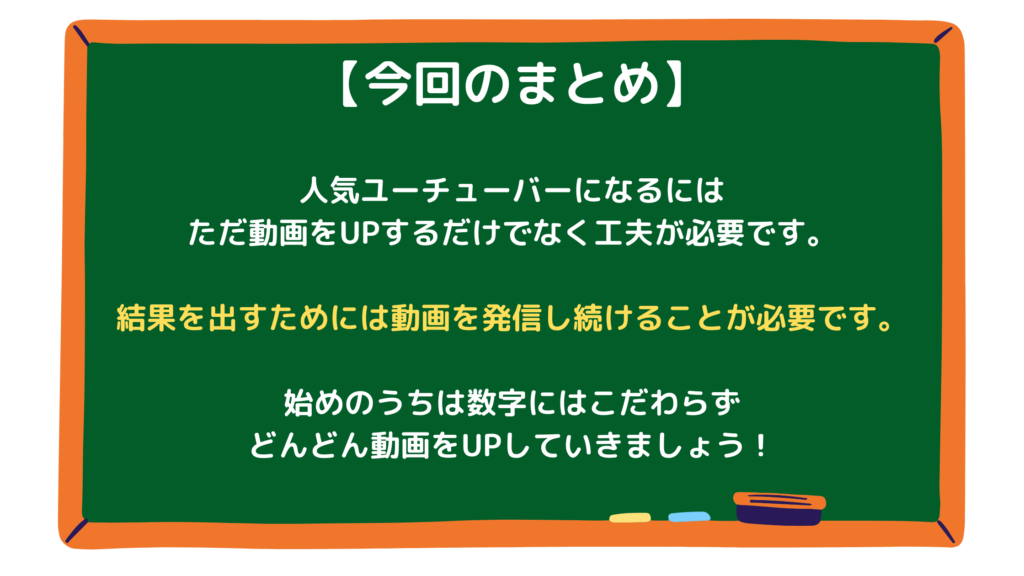 そういったことを念頭に置きながら、数字は気にせず、まずはどんどん動画をアップしていきましょう。