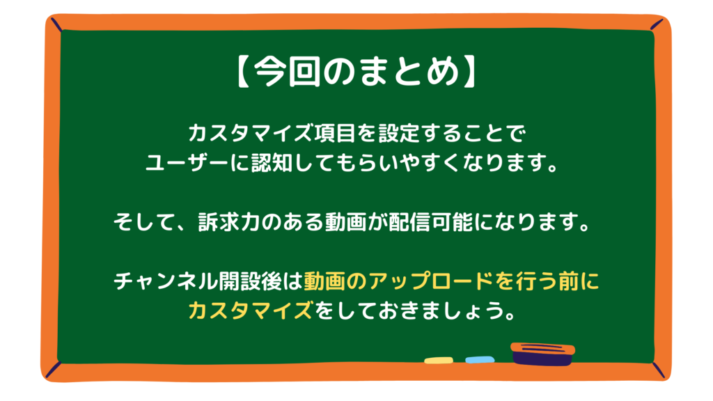 YouTubeチャンネルを開設したら、ユーザーに認知してもらうためにチャンネルのカスタマイズを行いましょう。